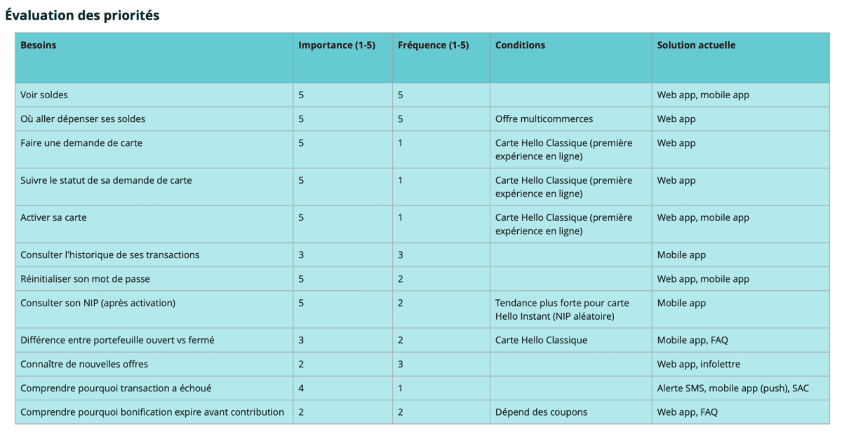 By evaluating each user need by importance and frequency, I was able to identify the most pressing ones: