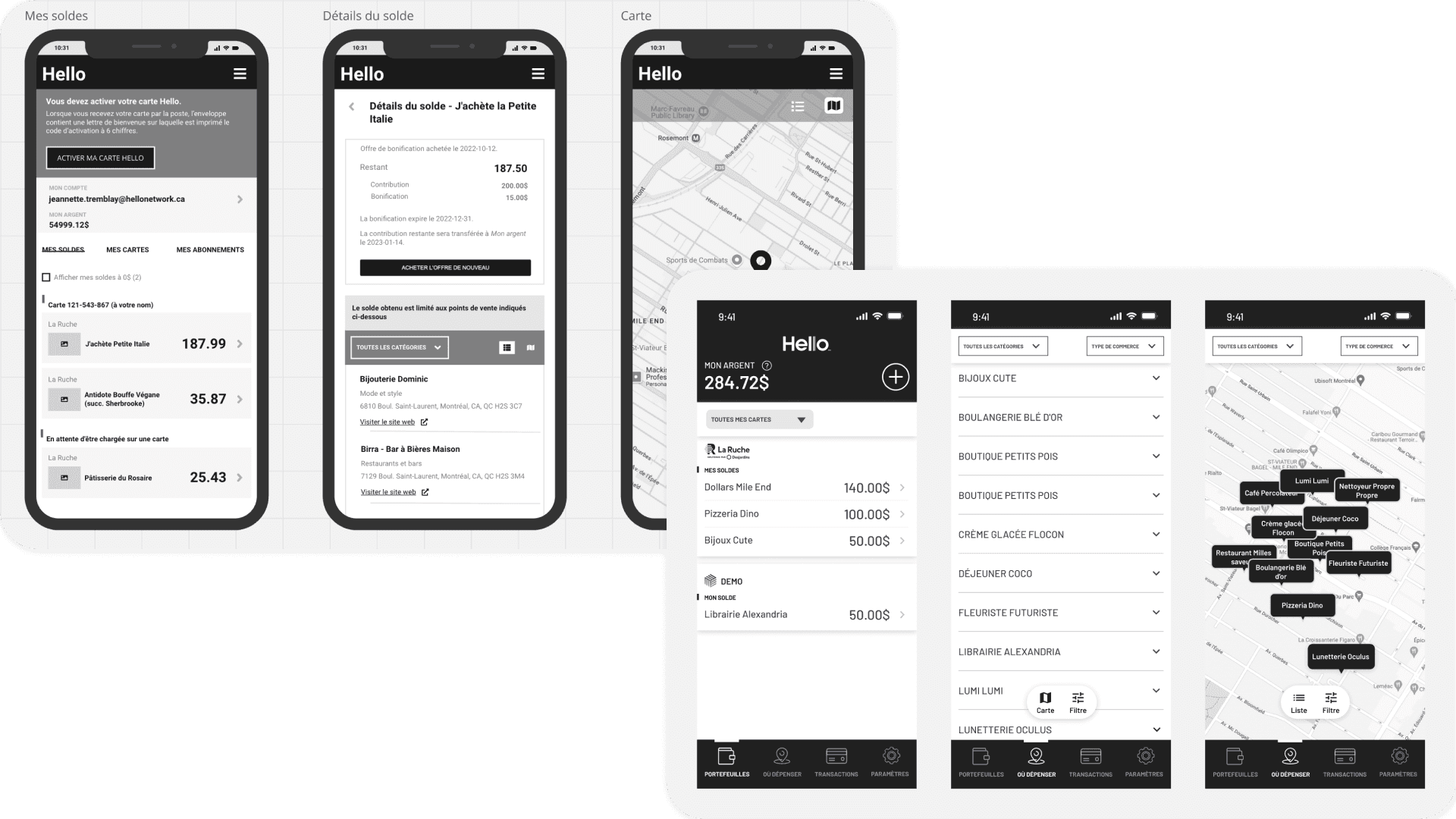 Hello users originally relied on a static list of participating businesses, which proved inconvenient for on-the-go use. I designed a mobile interactive map that enables users to quickly locate stores and check their balance in real-time.