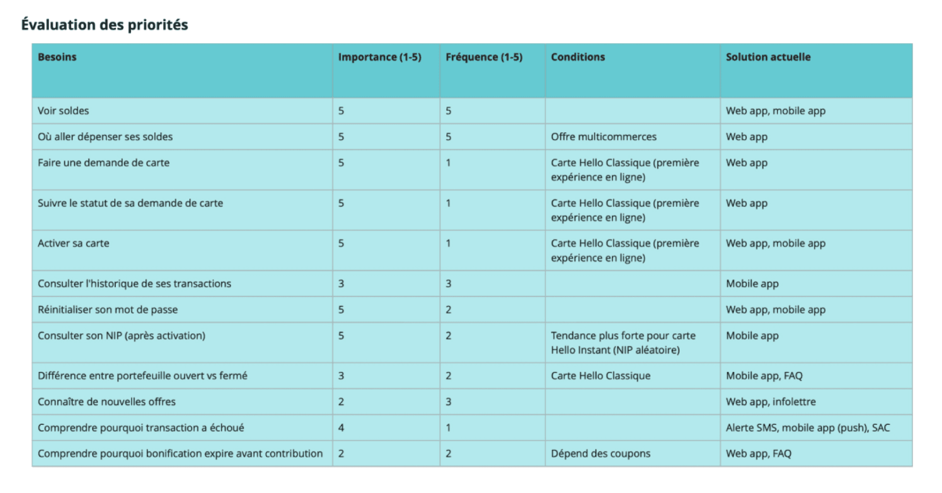 By evaluating each user need by importance and frequency, I was able to identify the most pressing ones: